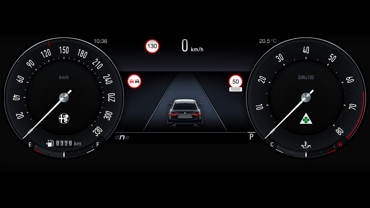 Fuel consumption Giulia Quadrifoglio Range (l/100 km): 10,3 - 10,1; CO₂ emission (g/km): 233 - 228.